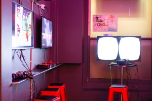 Spawn Point has an informal social atmosphere and feels less like a bar than a party in a friend’s basement. The other patrons are friendly and because of the shared interest in games and gaming culture it’s easy to strike up unique forms of interaction. At one point I had Oculus Rift Virtual Reality goggles on while another fellow I had just met was controlling my avatar’s movements.